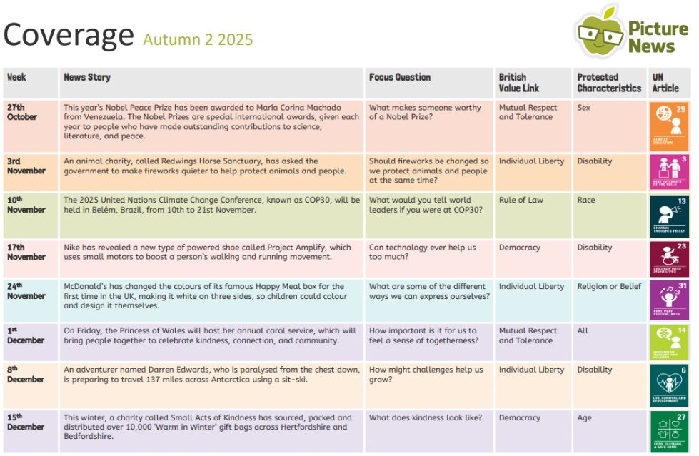 At Wordsworth we use Picture News to teach our pupils about current affairs and to spark their interest in the world around them. See below for what was covered during the Summer and Autumn terms.